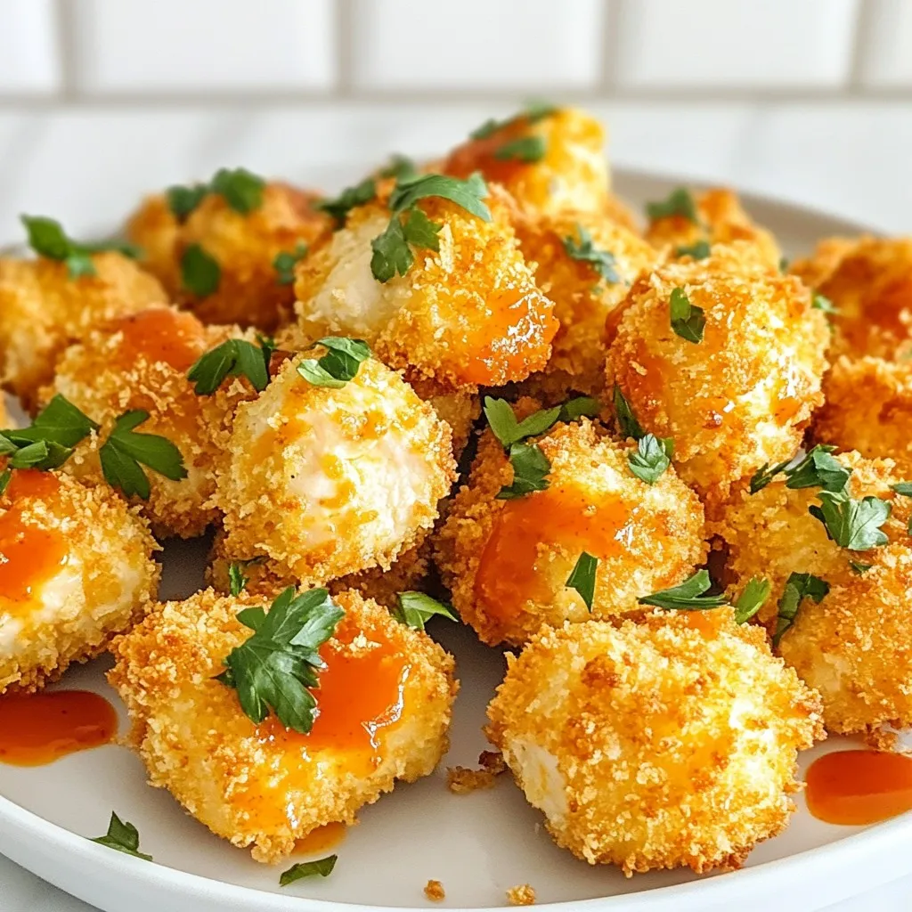 Finally, I like to garnish with fresh parsley. This adds color and a hint of freshness to the dish. The combination of the crispy coating and spicy sauce makes these bites truly irresistible!