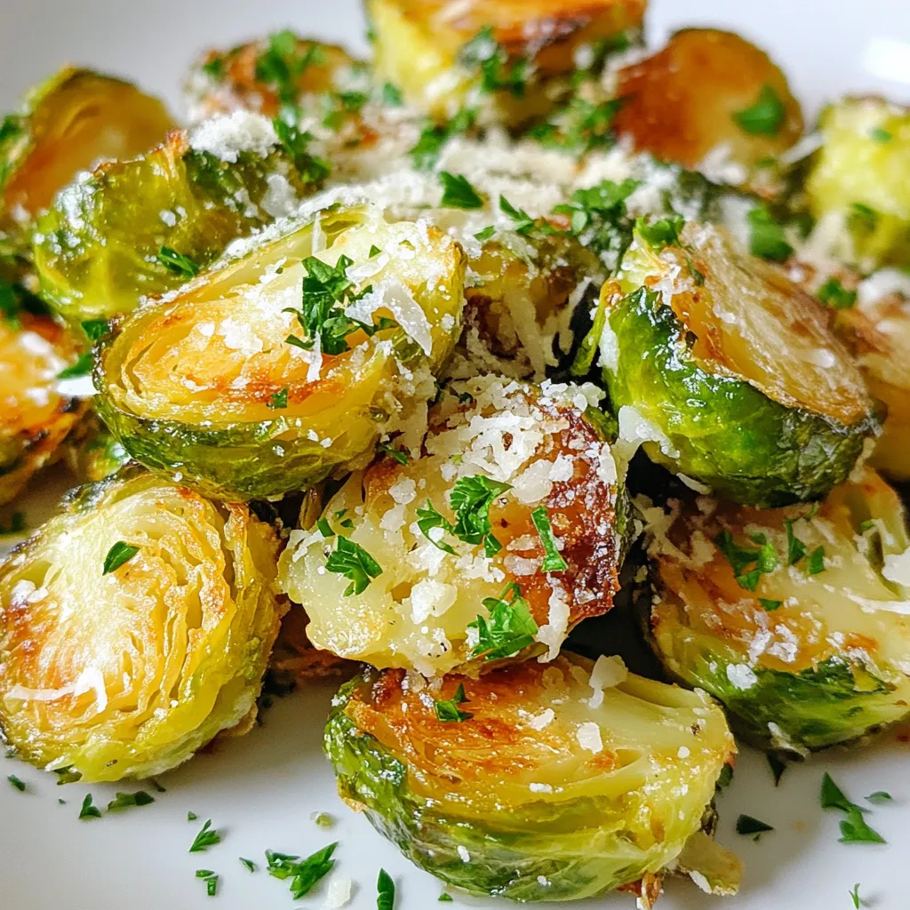 Crispy Brussels sprouts tossed in garlic, olive oil, and Parmesan cheese, cooked to perfection in an air fryer.