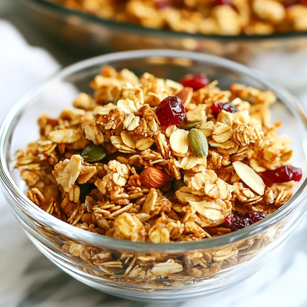 To make this granola vegan, ensure you use only plant-based ingredients. The maple syrup and coconut oil are already vegan. Just skip any optional honey or dairy ingredients. This way, you get a tasty vegan snack!