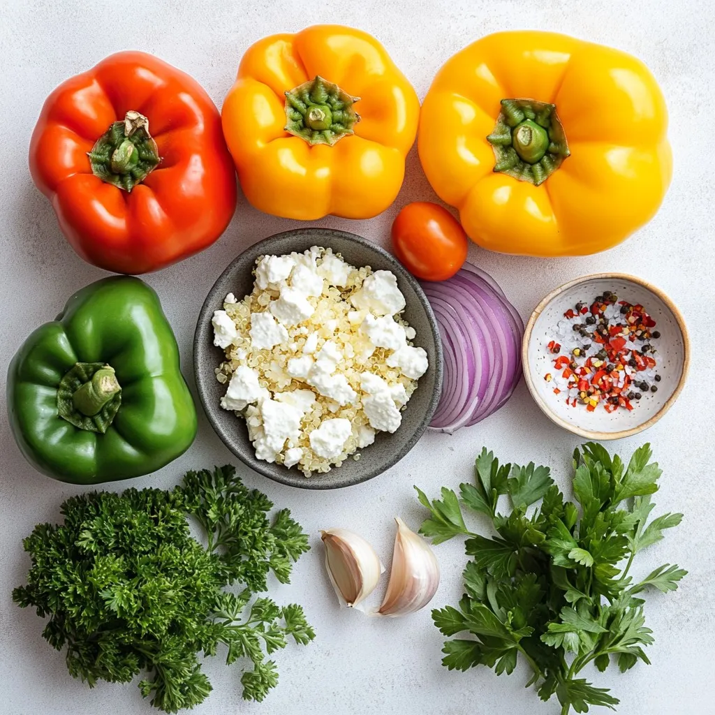 Delicious bell peppers stuffed with a savory mixture of feta cheese, quinoa, and vegetables, baked to perfection.