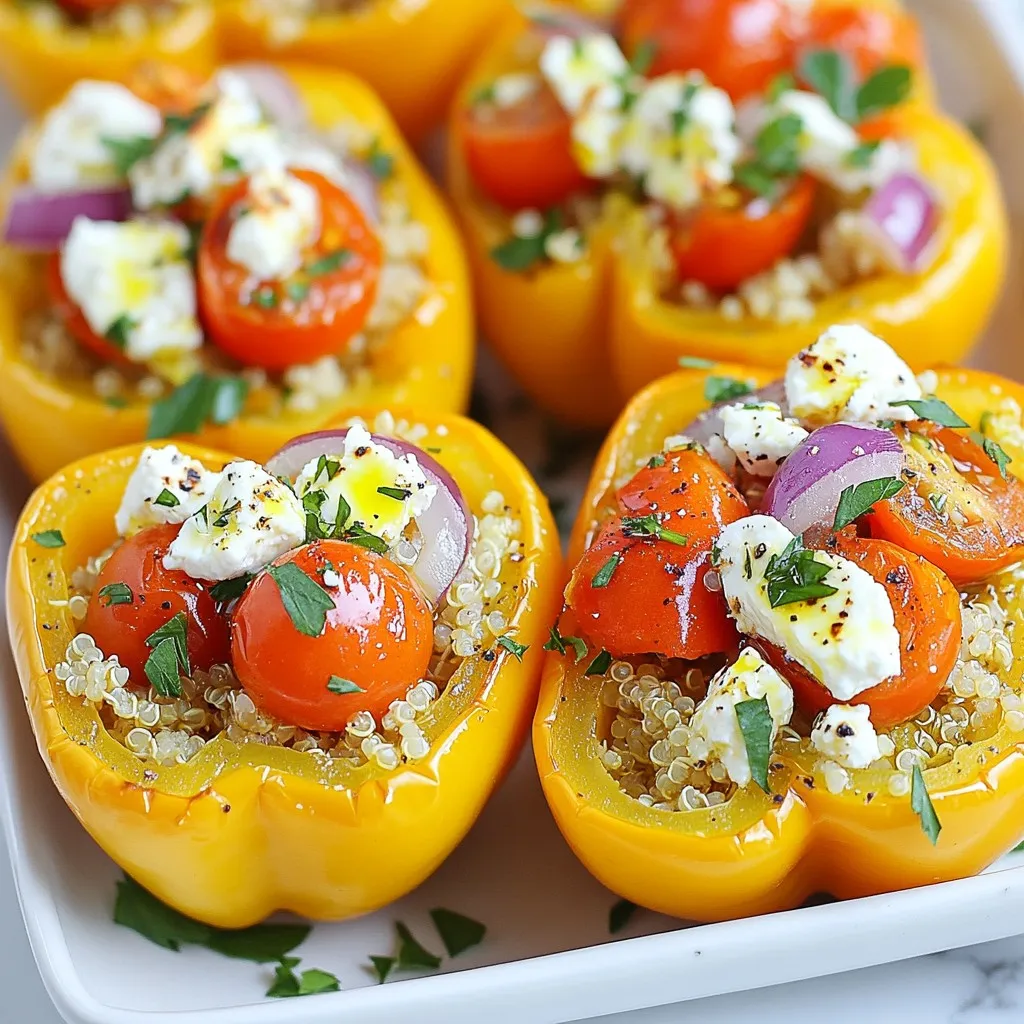 Keyword feta, quinoa, stuffed peppers, vegetarian