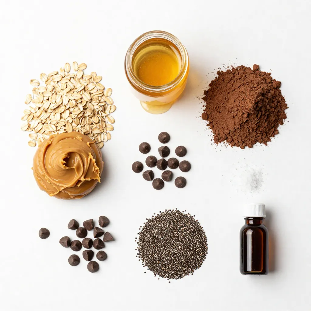 - 1 cup rolled oats - 1/2 cup natural peanut butter - 1/4 cup honey or maple syrup - 1/4 cup chocolate protein powder - 1/4 cup mini chocolate chips - 1/4 cup chia seeds - 1/2 teaspoon pure vanilla extract - A pinch of salt These ingredients create a tasty and healthy snack. The rolled oats give texture and fiber. Natural peanut butter adds creaminess and protein. Honey or maple syrup provides a sweet touch to balance the flavors. The chocolate protein powder boosts the protein content. Mini chocolate chips bring extra sweetness and fun. Chia seeds add nutrition and a slight crunch. The vanilla extract enhances the overall flavor. A pinch of salt helps to bring out all the tastes. Each ingredient plays a role in making these protein balls delicious and nutritious. {{ingredient_image_2}} First, grab a large mixing bowl. Add 1 cup of rolled oats, 1/4 cup of chocolate protein powder, 1/4 cup of chia seeds, and a pinch of salt. Use a whisk or fork to mix them well. This step helps to blend the flavors and ensure even distribution. Now, it's time to add the wet ingredients. Put in 1/2 cup of natural peanut butter, 1/4 cup of honey or maple syrup, and 1/2 teaspoon of pure vanilla extract. Use a spatula or wooden spoon to mix everything together. Keep stirring until you form a sticky dough. Make sure no dry bits remain in the bowl. With clean hands, scoop out about a tablespoon of the mixture. Roll it into a ball shape. Repeat this process until you use all the mixture. You should get around 12 to 15 protein balls. Place them on a baking sheet lined with parchment paper. Chill them in the refrigerator for about 30 minutes. This helps them firm up and hold their shape. Enjoy your tasty, protein-packed snack! To get the right texture for your protein balls, mix well. Start with the dry ingredients: oats, protein powder, chia seeds, and salt. Make sure these are even. Then, add the wet ingredients: peanut butter, honey, and vanilla. Mix until it feels sticky. If it is too dry, add a bit more honey or peanut butter. If it is too wet, add more oats. The right mix is key for the perfect protein balls. Presentation makes a big difference. Serve your protein balls on a colorful plate. You can also use a clear snack container. For a fun touch, sprinkle extra chia seeds or mini chocolate chips on top. This makes them look even more inviting. You can also serve them alongside some fresh fruit for a balanced snack. Feel free to change the recipe to fit your taste. Want a different nut butter? Swap peanut butter for almond butter or cashew butter. Don’t like chocolate protein powder? Use vanilla or even berry-flavored. You can also add dried fruit or nuts for extra flavor. This way, you can enjoy these protein balls in many ways, keeping each snack exciting! Pro Tips Texture Variation: Experiment with different types of nut butters, like almond or cashew, for a unique flavor and texture in your protein balls. Sweetness Control: Adjust the amount of honey or maple syrup based on your taste preference; you can even omit it for a lower-sugar option. Add-Ins Galore: Feel free to incorporate additional mix-ins like shredded coconut, dried fruits, or seeds to customize your protein balls. Meal Prep Friendly: These protein balls make an excellent meal prep snack; double the recipe and store them in the freezer for a quick grab-and-go option. {{image_4}} Chocolate peanut butter protein balls offer many health benefits. They provide a great source of energy. The rolled oats give you fiber, which helps digestion. Peanut butter adds healthy fats and protein. This snack can help keep you full longer. Chia seeds bring extra nutrients like omega-3 fatty acids. The mini chocolate chips add a delightful taste, making healthy eating fun. Each serving of these protein balls has about: - Calories: 120 - Protein: 5 grams - Fats: 6 grams - Carbohydrates: 12 grams These macronutrients work together to fuel your day. The protein helps build muscle, while the carbs provide quick energy. Incorporating these protein balls into your meals is easy. You can eat them as a snack between meals. They work well as a quick breakfast or post-workout treat. Pair them with fruit or yogurt for a balanced meal. Enjoy them with a glass of milk for added nutrients. Make sure to keep your overall diet varied and colorful to meet your health goals. To keep your chocolate peanut butter protein balls fresh, store them in an airtight container. This helps prevent them from drying out. Place the container in the fridge to maintain their shape and texture. If you want extra protection, line the container with parchment paper. These protein balls can last up to one week in the fridge. After that, they may start losing flavor and texture. Always check for any signs of spoilage, such as an off smell or unusual texture. If they look or smell funny, it’s best to toss them. You can freeze these protein balls for longer storage. To do this, place them in a single layer on a baking sheet. Freeze them until firm, then transfer to an airtight container. They can last for about three months in the freezer. When you want to eat them, just let them thaw in the fridge or at room temperature. Enjoy your snack whenever you need a boost! Yes, you can use almond butter. It has a similar texture and flavor. Almond butter adds a nutty taste that pairs well with chocolate. Just keep in mind that almond butter may change the taste slightly. If you are allergic to peanuts, almond butter is a great choice. These protein balls last about one week in the fridge. Store them in an airtight container. After a week, check for any signs of spoilage. If they smell off or look strange, it’s best to toss them. For longer storage, consider freezing them. You can skip the protein powder, but it affects the texture and protein content. Without it, your protein balls may be softer and less filling. If you want an alternative, try using ground oats or nut flour. This keeps the texture ri