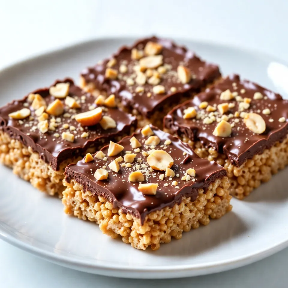 To make Chocolate Peanut Butter Rice Krispie Treats, you need the following ingredients: - Rice Krispies cereal: 4 cups - Mini marshmallows: 1 cup - Creamy peanut butter: 1/2 cup - Milk chocolate chips: 1/2 cup - Unsalted butter: 1/4 cup - Vanilla extract: 1/2 teaspoon - Pinch of salt These ingredients come together to create a sweet and crunchy treat. The Rice Krispies give the base its classic crunch. Mini marshmallows add sweetness and a chewy texture. Creamy peanut butter brings a rich flavor that pairs perfectly with chocolate. The milk chocolate chips melt beautifully on top, adding a luscious finish. Unsalted butter is crucial for a creamy blend, while vanilla extract enhances all the flavors. A pinch of salt balances the sweetness. With these ingredients, you're ready to create a treat that your friends and family will love! {{ingredient_image_2}} Start by greasing a 9x13 inch baking dish with a thin layer of butter. You can also use parchment paper. This helps lift the treats out easily later. In a large saucepan, place unsalted butter and creamy peanut butter over low heat. Stir gently until both melt together, creating a smooth mix. This step gives the treats their rich flavor. Once the butter and peanut butter mix is smooth, add the mini marshmallows. Keep stirring until they melt completely. This ensures a nice, gooey texture. Remove the saucepan from heat. Now, gently fold in the Rice Krispies cereal. Make sure every piece gets coated well, but don’t crush them. A gentle touch keeps the treats light. Next, add 1/2 teaspoon of vanilla extract and a pinch of salt. These ingredients boost the flavor and make the treats even more delicious. Pour the cereal mixture into the greased baking dish. Use a spatula to spread it evenly. Lightly press down, but be careful not to squish the cereal. This keeps the treats airy. In a microwave-safe bowl, place the milk chocolate chips. Heat them in 30-second intervals. Stir after each time until smooth. This creates a rich chocolate drizzle. After the Rice Krispies base cools a bit, pour the melted chocolate over the top. Use a spatula to spread it evenly. This gives the treats a beautiful finish. Let the chocolate cool and set at room temperature for about 15-20 minutes. For a quicker set, place the dish in the fridge. Once firm, cut into squares for serving. Enjoy your delightful treats! To keep your Rice Krispies intact, treat them gently. When mixing, fold the cereal in slowly. Use a spatula to lift and turn the mixture rather than stirring hard. This way, you avoid crushing the crispy bits. I also recommend letting the marshmallow mix cool slightly before adding the cereal. This helps keep the cereal from getting soggy. Want to enhance the flavor? Try adding a pinch of cinnamon or a dash of sea salt. These can make your treats pop! You can also mix in some chocolate or peanut butter chips for extra taste. A splash of maple syrup or honey can add a nice sweetness too. For a stunning presentation, serve your treats on a colorful platter. You can drizzle extra melted chocolate on top for flair. To add some crunch, sprinkle crushed peanuts or chocolate shavings just before serving. This not only looks good but also adds texture. Enjoy your beautiful creation! Pro Tips Use Fresh Ingredients: Always ensure your marshmallows and chocolate chips are fresh for the best texture and flavor. Don’t Overheat the Chocolate: When melting chocolate, heat it in short intervals and stir frequently to avoid burning. Press Gently: When packing the Rice Krispies mixture into the pan, press down gently to maintain the treat's light and crispy texture. Experiment with Toppings: Feel free to add toppings like crushed nuts or sprinkles for added flavor and visual appeal. {{image_4}} You can switch out peanut butter for almond or cashew butter. Both options taste great and add their own twist. Almond butter gives a nutty flavor, while cashew butter offers a creamy texture. Try these nut butters to change things up. Just use the same amount as peanut butter. Want to add more flavor? You can mix in coconut flakes or drizzle caramel on top. Coconut adds a tropical touch, while caramel brings sweetness. You can also try adding a pinch of cinnamon for warmth. These additions make your treats even more special! If you need a gluten-free option, make sure to use gluten-free Rice Krispies. Many brands offer gluten-free cereal now. This way, everyone can enjoy these treats without worry. Always check labels to be safe. To keep your Chocolate Peanut Butter Rice Krispie Treats fresh, store them in an airtight container. This helps prevent them from becoming hard. You can layer them with parchment paper to keep them from sticking together. Keep the container at room temperature for the best taste. Avoid placing them in the fridge, as cool air may dry them out. You can freeze these treats for later enjoyment. First, cut them into squares. Wrap each piece tightly in plastic wrap. Then, place them in a freezer-safe bag or container. They can freeze for up to three months. When you’re ready to enjoy, take them out and let them thaw at room temperature. This keeps them soft and tasty. When stored properly, these treats last about one week at room temperature. Make sure to check for any signs of hardening or loss of flavor. If they’re frozen, you can keep them for about three months without losing quality. Enjoy them fresh for the best flavor and texture! Yes, you can use other cereals. Some great options are: - Cornflakes - Cheerios - Crispix - Fruity Pebbles These cereals will give your treats a fun twist. Each type adds a unique flavor and crunch. Experiment to find your favorite! To make your treats chewy, try these tips: - Use more mini marshmallows. This adds extra moisture. - Add a little more peanut butter. It helps keep things soft. - Don't overbake the mixture. Just press it down gently. These changes will give you that perfect chewy texture. Yes, you can make th