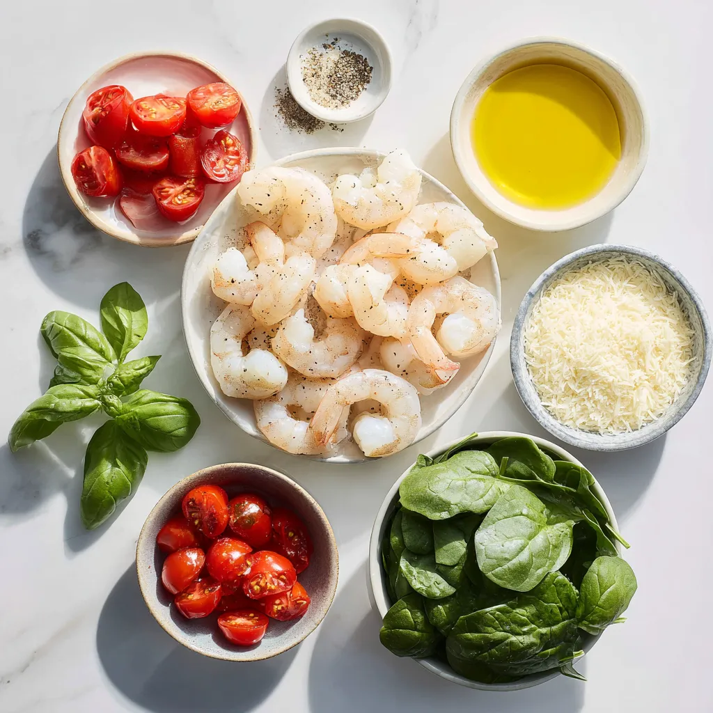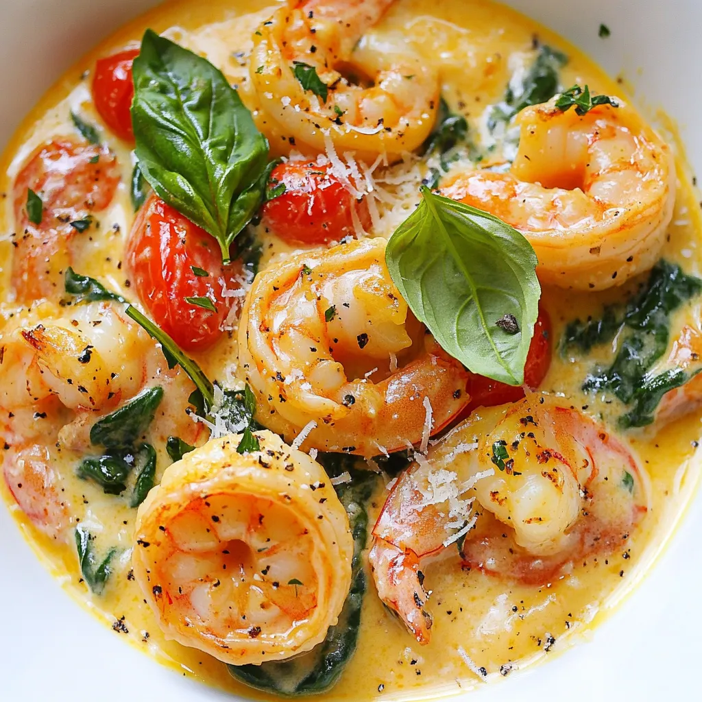 A delicious and creamy shrimp dish with Tuscan flavors, featuring garlic, spinach, and tomatoes.