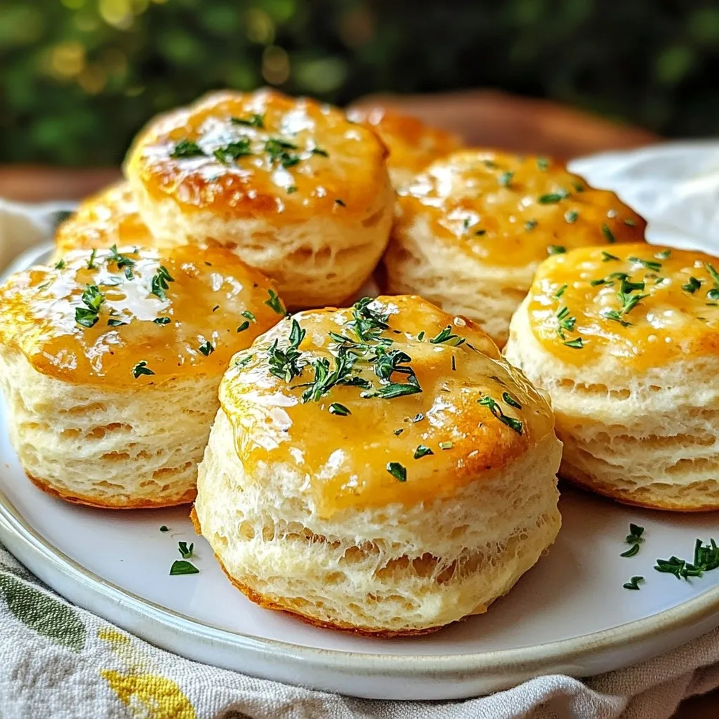 Delicious and flaky biscuits infused with garlic and fresh herbs, perfect for any meal.