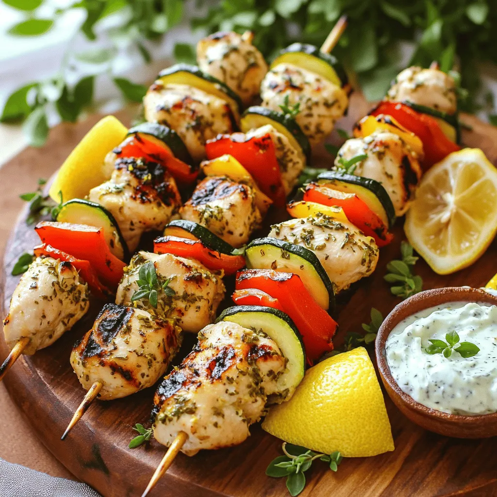 After grilling, let the skewers rest for about 5 minutes. This allows the juices to settle. Cutting into them too soon can dry them out. Serve the skewers on a platter. Add lemon wedges and fresh herbs for a pop of color. For a tasty addition, serve with tzatziki sauce. This dip pairs well with the skewers.