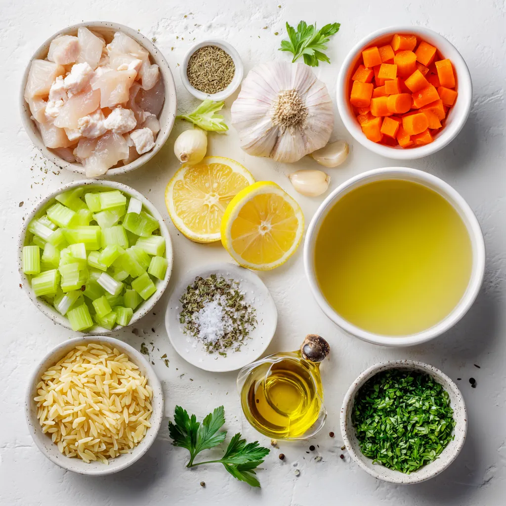 Here is a list of the ingredients you will need for Greek Lemon Chicken Soup:
