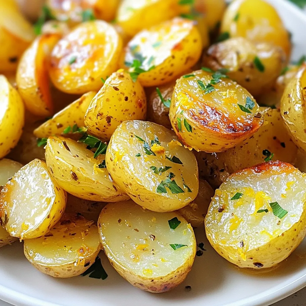 A vibrant and flavorful side dish featuring baby potatoes roasted in a zesty lemon-garlic marinade.
