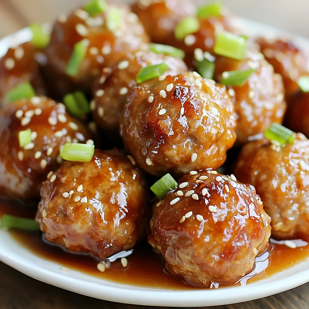 Spoon the glazed meatballs onto a serving platter and garnish with sesame seeds and additional chopped green onions.