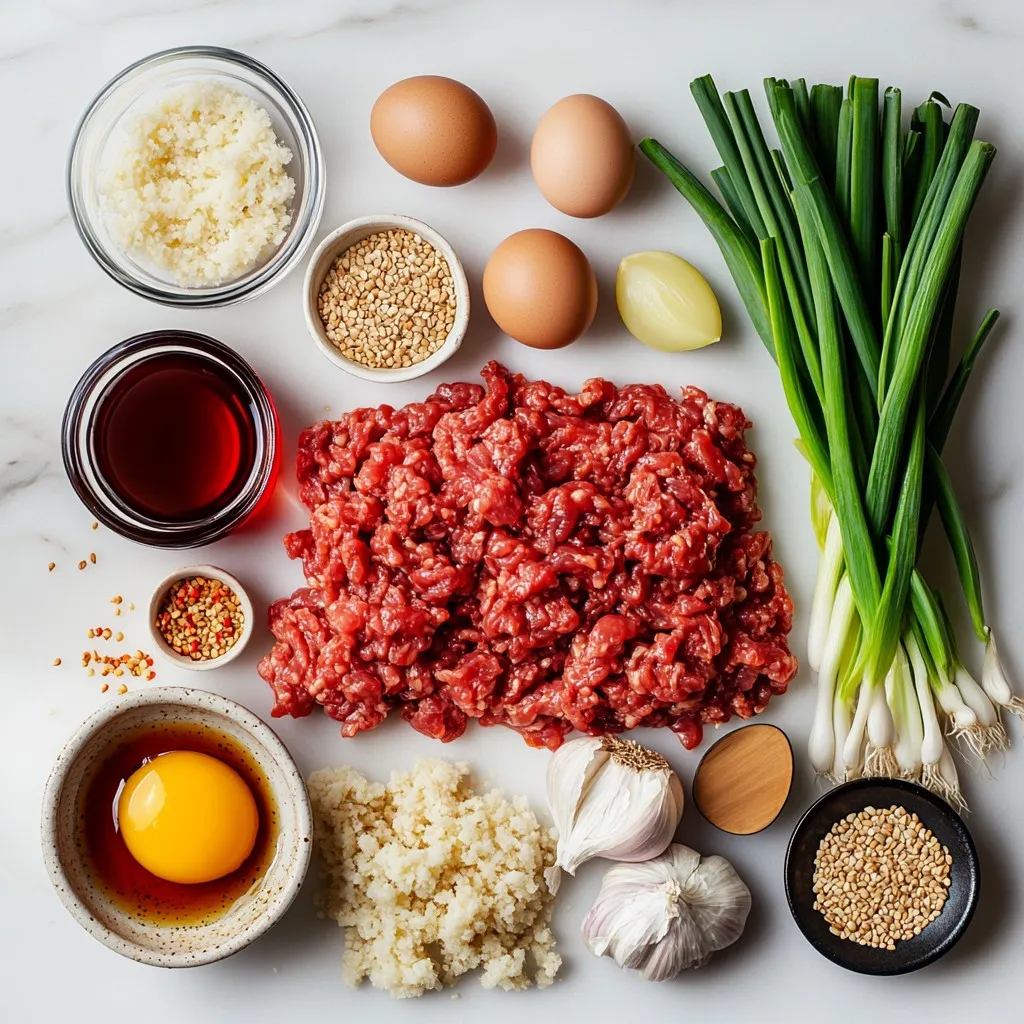 In a large mixing bowl, combine the ground beef (or turkey), breadcrumbs, beaten egg, minced garlic, grated ginger, chopped green onions, soy sauce, and a generous pinch of salt and pepper. Mix until just combined.