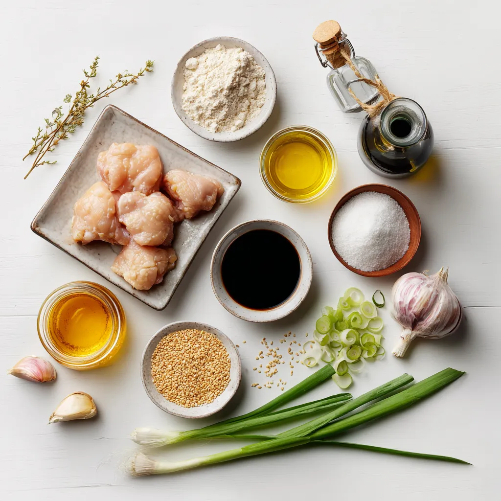 Take 1 pound of boneless chicken thighs and cut them into bite-sized pieces. Lightly season them with salt and pepper. Now, dust each piece with 1/4 cup of cornstarch. Make sure each piece is evenly coated. Heat 2 tablespoons of vegetable oil in a large skillet over medium-high heat. When the oil shimmers, add the chicken in a single layer. Fry until golden brown, about 5 to 7 minutes per side. If needed, fry in batches to avoid crowding. Once cooked, place the chicken on a paper towel-lined plate to drain excess oil.