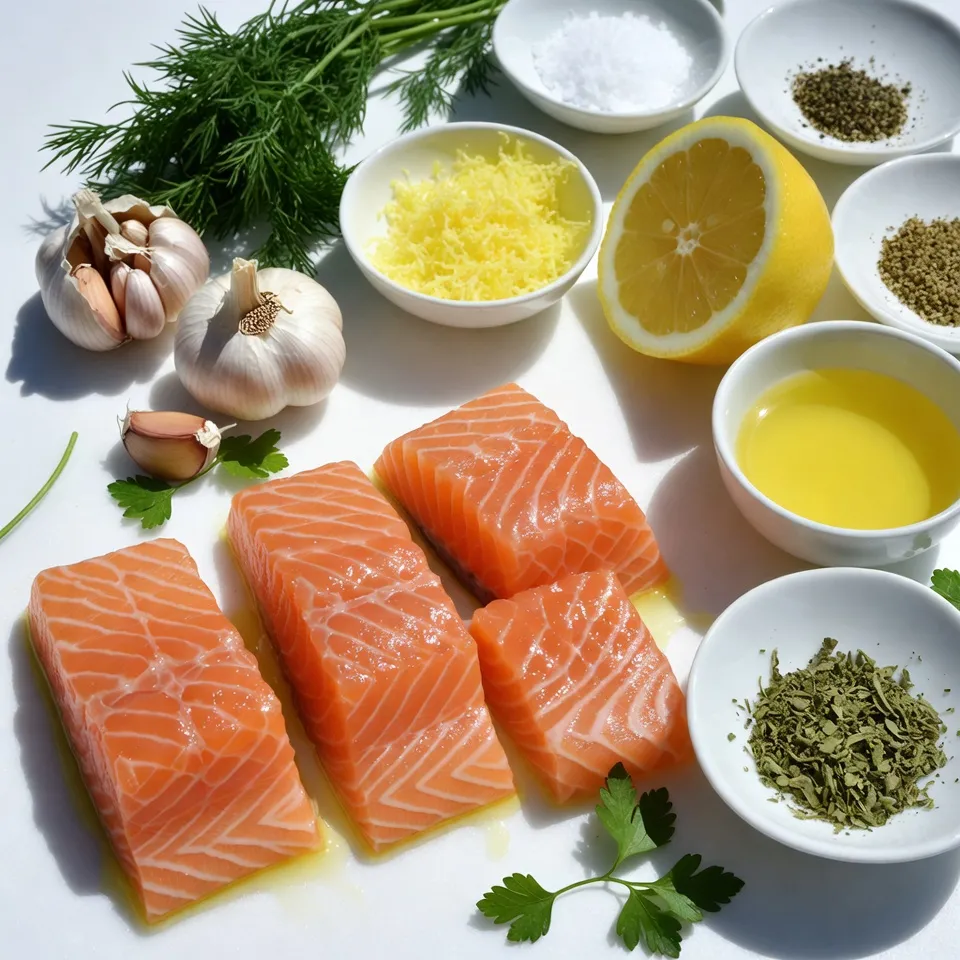 - 4 salmon fillets (approximately 6 ounces each) - 3 tablespoons extra virgin olive oil - 3 cloves of garlic, finely minced - Zest of 1 medium lemon - Juice of 1 medium lemon - 1 teaspoon dried oregano - Salt and freshly cracked black pepper, to taste - Fresh dill or parsley, finely chopped, for garnishing To make Lemon Garlic Air Fryer Salmon, start with fresh salmon fillets. I love to use fillets that weigh about six ounces. They cook quickly and stay moist. You will need three tablespoons of extra virgin olive oil. This oil brings a rich flavor and helps the salmon crisp up nicely. Next, grab three cloves of garlic. Mince them finely to release their strong flavor. The zest and juice of one medium lemon add a bright zing that pairs perfectly with the fish. The zest gives you that fresh lemon flavor, while the juice adds tang. For seasonings, use one teaspoon of dried oregano. It gives the dish a nice earthy taste. Season with salt and freshly cracked black pepper to your liking. These simple seasonings enhance the salmon's natural taste. Finally, I like to garnish my dish with fresh dill or parsley. They add a pop of color and freshness. This combination of ingredients creates a delicious, easy meal. You can enjoy it with a side of veggies or a light salad. {{ingredient_image_2}} - Preheat your air fryer: Start by preheating your air fryer to 400°F (200°C) for about 5 minutes. This step is key to cooking your salmon evenly. - Prepare the air fryer basket: Lightly grease the air fryer basket with cooking spray or a bit of olive oil. This helps stop the salmon from sticking during cooking. - Whisking the ingredients: In a small bowl, whisk together 3 tablespoons of extra virgin olive oil, 3 cloves of minced garlic, the zest of one lemon, and the juice of that lemon. Add 1 teaspoon of dried oregano and a pinch of salt and pepper. Mix well until everything blends nicely. - Importance of marinating time: Place the salmon fillets in a shallow dish or a resealable bag. Pour the marinade over the fillets. Make sure each piece is well coated. For the best flavor, let the salmon marinate for at least 15 minutes. The longer it sits, the more flavor it gains. - Arranging fillets in the basket: After marinating, take out the salmon and gently place the fillets in a single layer in the air fryer basket. Avoid crowding the basket for even cooking. - Cooking time and temperature: Air fry the salmon for 8 to 10 minutes. Adjust the time based on how thick your fillets are. The salmon is done when it flakes easily with a fork and reaches an internal temperature of 145°F (63°C). - Checking for doneness: Once the cooking time is up, carefully remove the salmon from the air fryer. Let it rest for 2 to 3 minutes. This helps the juices settle, making it more tasty. To make the best marinade, marinate your salmon for at least 15 minutes. If you have more time, try to marinate for 30 minutes. This helps the flavors soak in better. The lemon juice adds brightness, while the garlic gives a robust taste. For a twist, add a pinch of red pepper flakes for heat. You can also try fresh herbs like rosemary or thyme for a different flavor. To ensure even cooking, always preheat your air fryer to 400°F (200°C). This step helps the salmon cook perfectly. When placing the fillets in the basket, make sure they don’t touch. Overcrowding can lead to uneven cooking. If you have many fillets, consider cooking in batches. This way, every piece gets that crispy, golden finish. Serve your salmon with steamed veggies or a light salad for a healthy meal. Broccoli, green beans, or a fresh garden salad work well. For a great look, arrange the salmon on a plate with lemon wedges and a sprinkle of fresh dill or parsley. This adds color and makes the dish pop. Enjoy your zesty salmon that is both tasty and pleasing to the eye! Pro Tips Marinate Longer for More Flavor: If you have time, marinate the salmon for up to an hour. This allows the flavors to penetrate deeper into the fish, resulting in a more intense taste. Check for Doneness: Use a meat thermometer to ensure the salmon reaches an internal temperature of 145°F (63°C). This guarantees that your fish is perfectly cooked and safe to eat. Use Fresh Ingredients: Whenever possible, use fresh garlic and herbs. Fresh ingredients will elevate the flavor profile of your dish significantly compared to dried or pre-packaged options. Experiment with Seasonings: Feel free to customize the marinade by adding your favorite spices or herbs, such as paprika or thyme, to create your unique flavor twist! {{image_4}} You can change up the flavor of your lemon garlic air fryer salmon by using different herbs and spices. Try adding fresh rosemary or thyme for a new twist. You can also use smoked paprika for a hint of smokiness. If you like a bit of heat, sprinkle some chili flakes into the marinade. This will add a nice kick to your dish. If you want to switch proteins, consider using other fish options like trout or cod. These fish also cook well in the air fryer. You can even use chicken breasts instead of salmon. Just adjust the cooking time, as chicken may take a bit longer to cook through. If you don’t have an air fryer, you can still enjoy this dish. You can bake the salmon in the oven at 400°F (200°C) for about 12-15 minutes. Another option is to broil the salmon. Place it under the broiler for 6-8 minutes. Watch closely to avoid burning. Both methods will give you a tasty meal. To keep your lemon garlic air fryer salmon fresh, store it in the fridge. Let it cool down first. Place the salmon in a shallow container. Make sure it has a tight lid. You can also use a resealable bag. Keep the salmon in the fridge for up to three days. You can reheat the salmon in several ways: - Oven: Preheat your oven to 350°F (175°C). Place the salmon on a baking sheet. Heat for 10-15 minutes. This keeps it moist. - Microwave: Place a piece of salmon on a microwave-safe plate. Cover it with a damp