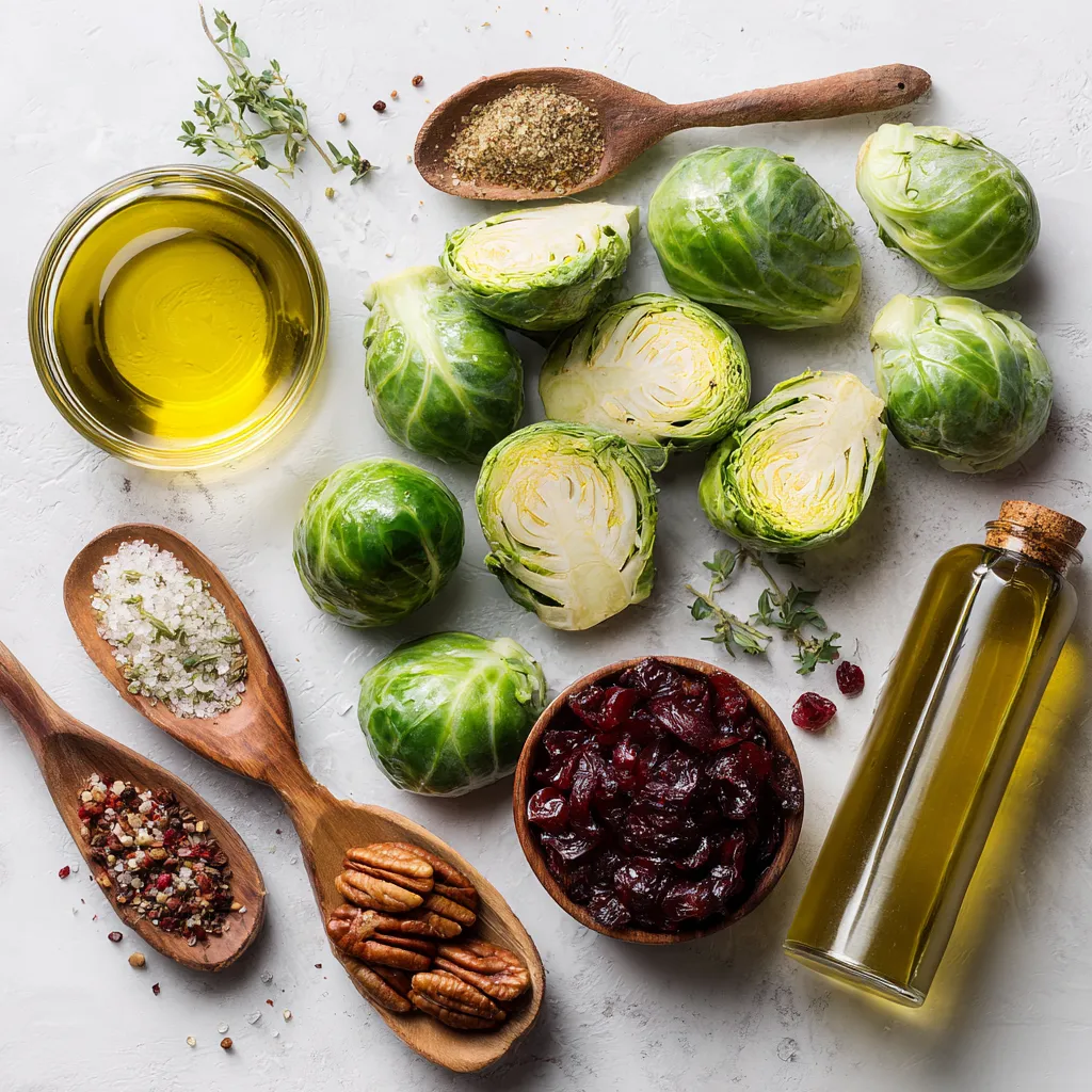 You can easily find these items at your local store. Fresh Brussels sprouts are key. Look for green, compact ones. The added pecans and cranberries can give your dish an extra layer of flavor and texture.