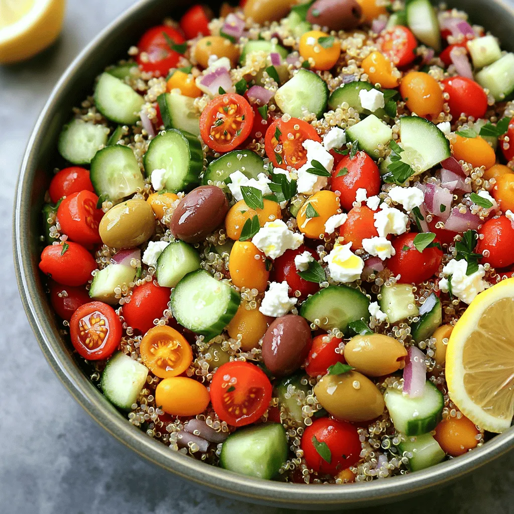 This quinoa salad is not just delicious; it’s also healthy! Each serving provides a good balance of protein, fiber, and healthy fats. Quinoa is a complete protein, meaning it contains all nine essential amino acids. The vegetables add vitamins, minerals, and antioxidants. Feta cheese adds a creamy texture while providing calcium. Overall, this salad supports a balanced diet with fresh, wholesome ingredients.