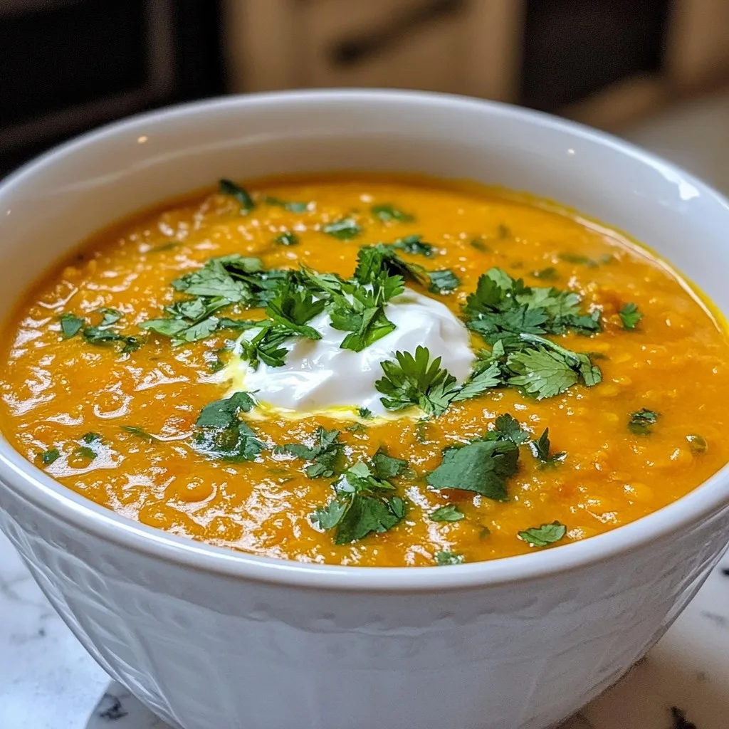 - 2 tablespoons extra virgin olive oil - 1 large onion, finely diced - 3 garlic cloves, minced - 2 teaspoons ground cumin - 1 teaspoon ground coriander - 1 teaspoon ground cinnamon - 1/2 teaspoon cayenne pepper (adjust according to your spice preference) - 4 large carrots, peeled and cut into bite-sized pieces - 1 cup red lentils, thoroughly rinsed and drained - 6 cups vegetable broth - 1 tablespoon fresh lemon juice - Sea salt and freshly ground black pepper, to taste - Fresh cilantro or parsley, chopped, for garnish - Optional: A generous dollop of Greek yogurt, for serving Each ingredient plays a key role in creating the rich flavors of this soup. - Extra virgin olive oil adds healthy fats and depth of flavor. - Onion brings sweetness and a savory base to the soup. - Garlic adds a fragrant kick that enhances the taste. - Ground cumin and ground coriander provide warmth and earthiness. - Ground cinnamon adds a touch of sweetness and spice. - Cayenne pepper gives the soup a little heat; you can adjust it as you like. - Carrots add sweetness and texture, making each bite satisfying. - Red lentils thicken the soup and provide protein. - Vegetable broth forms the soup’s main liquid, adding flavor. - Fresh lemon juice brightens the soup, balancing its richness. - Sea salt and black pepper enhance all the flavors. - Cilantro or parsley adds freshness as a garnish. - Greek yogurt (optional) can add creaminess to each bowl. With these ingredients, you create a soup that is both flavorful and nourishing. Each bite warms the heart and satisfies the soul. {{ingredient_image_2}} Start by heating the olive oil in a large pot over medium heat. This oil adds flavor and helps cook the soup. Once the oil is hot, add the finely diced onion. Sauté it for about five minutes. You want the onion to turn soft and see-through. Then, add the minced garlic. Cook it for one more minute. Stir often, so it does not burn. The garlic will smell great. Next, sprinkle in the ground cumin, coriander, cinnamon, and cayenne pepper. Stir this mix for one to two minutes. This toasting step makes the spices even more fragrant. Now it’s time to add the main ingredients. Toss in the chopped carrots and rinsed red lentils. Stir everything well so the lentils and carrots soak up the spice mix. After that, pour in the vegetable broth. Bring this mixture to a rolling boil. Once it boils, lower the heat and let the soup simmer. Cover the pot with a lid. This helps keep the moisture in. Let the soup simmer for about 25 to 30 minutes. You want the lentils and carrots to become soft and easy to mash. After cooking, take the pot off the heat. Use an immersion blender to puree the soup until smooth. If you don’t have one, carefully transfer the soup to a traditional blender in batches. Blend it until you reach the consistency you like. Finally, stir in the fresh lemon juice. Season the soup with sea salt and black pepper to taste. Your Moroccan carrot lentil soup is now ready to serve! To make this Moroccan carrot lentil soup just right, adjust the spices to match your taste. If you like more heat, add more cayenne pepper. Start with half a teaspoon, then taste and add more if needed. For a milder flavor, reduce the cayenne. Texture is key too. You want the lentils and carrots soft enough to blend. Cook them until they are tender. If you prefer a chunky soup, blend just half of it. This gives you a nice mix of creaminess and texture. Using the right tools makes cooking easier. A large pot is a must for sautéing the onions and garlic. A wooden spoon helps stir the soup and keep it from sticking. For blending, an immersion blender is great. It lets you blend right in the pot. If you don’t have one, a regular blender works too. Just be careful, and blend in batches. Also, keep a towel handy to cover the lid. This helps avoid splatters. With these tips, your Moroccan carrot lentil soup will be flavorful and smooth. Enjoy the process! Pro Tips Adjust the Spice Level: If you prefer a milder soup, reduce the amount of cayenne pepper or omit it altogether. You can always add more spice later! Use Fresh Spices: For the best flavor, use fresh spices. If your spices have been in your pantry for a while, consider replacing them for an aromatic boost. Texture Preference: Blend the soup to your desired consistency. For a chunkier soup, blend only half and leave the rest unblended for added texture. Garnish Wisely: Fresh herbs like cilantro or parsley add a vibrant finish. If you don’t have either, consider using a sprinkle of paprika or a squeeze of lime for brightness. {{image_4}} If you want to switch up the lentils in your Moroccan carrot lentil soup, try using green or brown lentils. They add a different texture and flavor. You can also use split peas or chickpeas for a tasty twist. For veggies, sweet potatoes or butternut squash work well. They bring a nice sweetness that complements the spices. For a dairy-free or vegan option, skip the Greek yogurt. Instead, use coconut yogurt or a splash of coconut milk for creaminess. You can also add nutritional yeast for a cheesy flavor without dairy. To boost the flavor, consider adding more spices. A pinch of nutmeg or turmeric adds warmth and depth. Fresh herbs like mint or dill can brighten the soup. Feel free to mix in some fresh ginger for an extra zing. For added protein, toss in cooked quinoa or shredded chicken. These options make the soup heartier and more filling. You could also stir in some spinach or kale for extra greens. This keeps the soup vibrant and packed with nutrients. You can store Moroccan carrot lentil soup in the fridge for about 4 to 5 days. Make sure to let the soup cool down first. Then, transfer it to an airtight container. This will keep it fresh and safe to eat. When you are ready to enjoy it again, just take it out and reheat it on the stove or in the microwave. Freezing the soup is a great option if you want it to last longer. First, let the soup cool completel