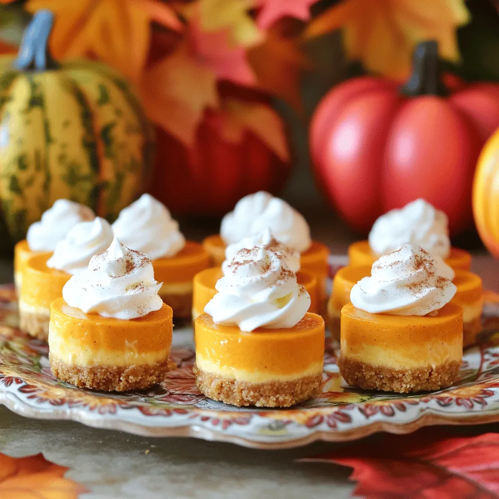 Serve pumpkin spice cheesecake bites chilled for the best taste. Top each bite with whipped cream. A sprinkle of ground cinnamon adds a lovely touch. Place them on a fun platter for a nice look. This makes them perfect for parties or family gatherings.
