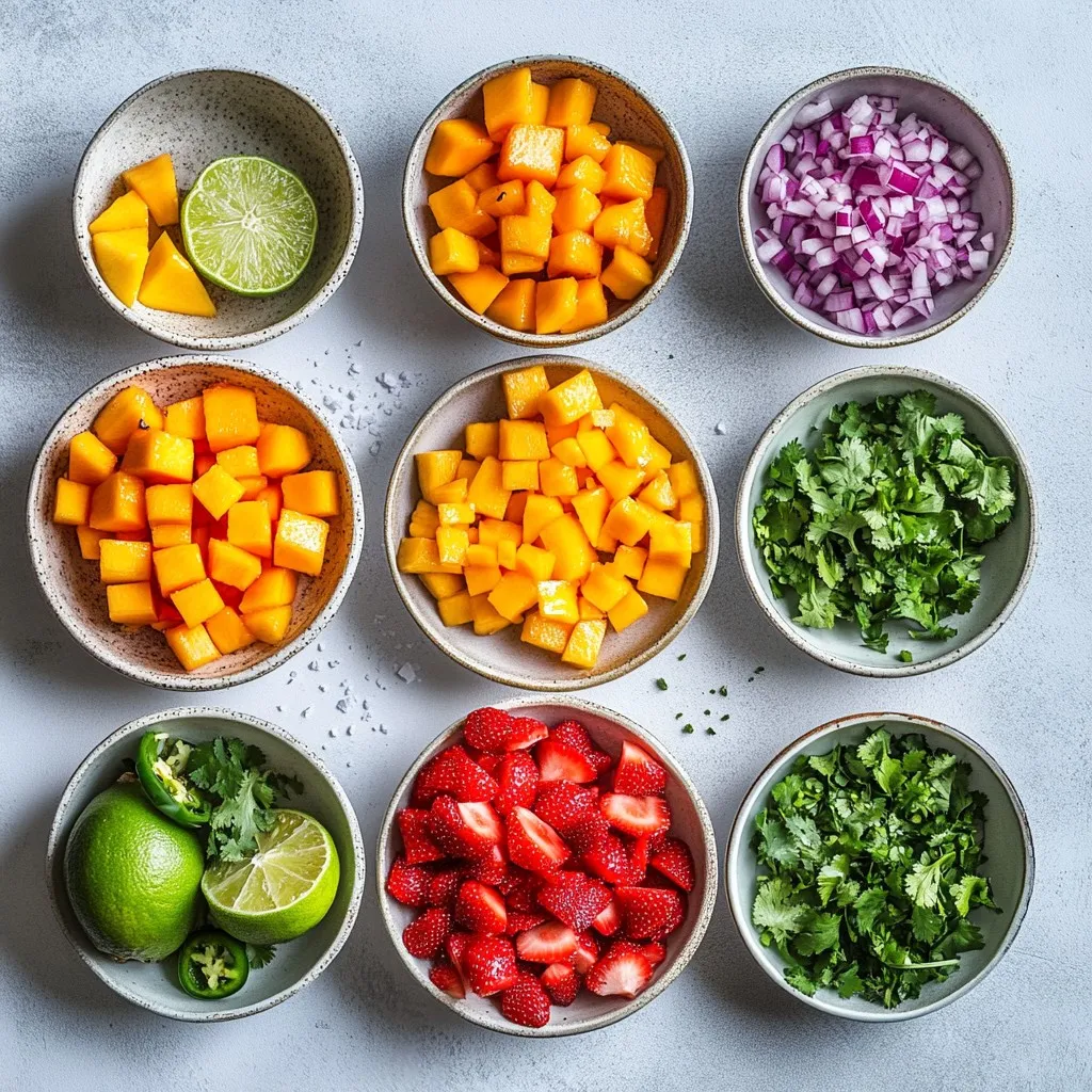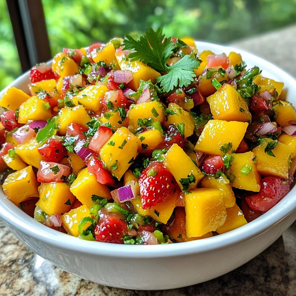 A refreshing and vibrant salsa made with fresh strawberries and ripe mango, perfect for summer gatherings.