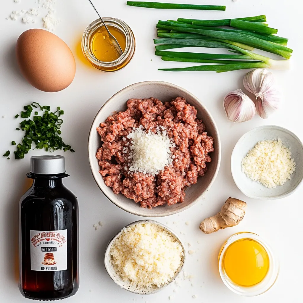 In a large mixing bowl, combine the ground beef or turkey, toasted breadcrumbs, and grated Parmesan cheese. Add the egg, minced garlic, soy sauce, grated ginger, kosher salt, and black pepper. Use your hands or a sturdy spoon to mix well. You want all the ingredients to blend evenly. This ensures every bite is packed with flavor.