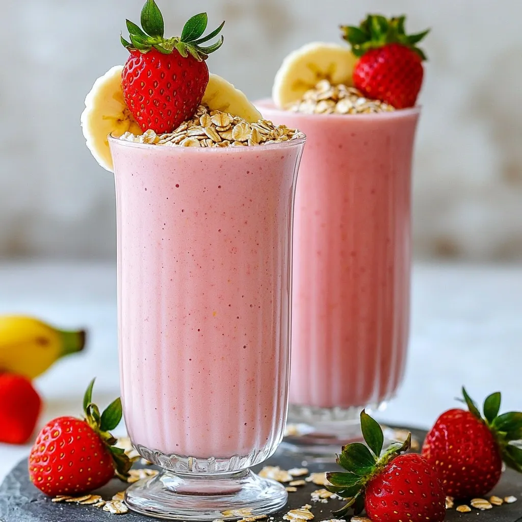 A delicious and creamy smoothie made with strawberries, banana, and oats, perfect for a quick breakfast or snack.