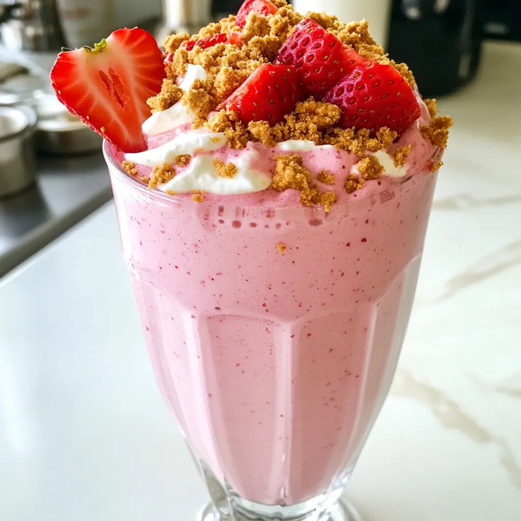 These ingredients work together to create a rich and creamy smoothie that tastes just like cheesecake. Fresh strawberries give a sweet and tangy flavor, while cream cheese adds that signature richness. Greek yogurt enhances the creamy texture and boosts protein. The milk makes it smooth, while honey or maple syrup adds sweetness. Vanilla extract deepens the flavor, and graham cracker crumbs bring that classic cheesecake crust taste. Finally, ice cubes make the smoothie refreshing and chilled.
